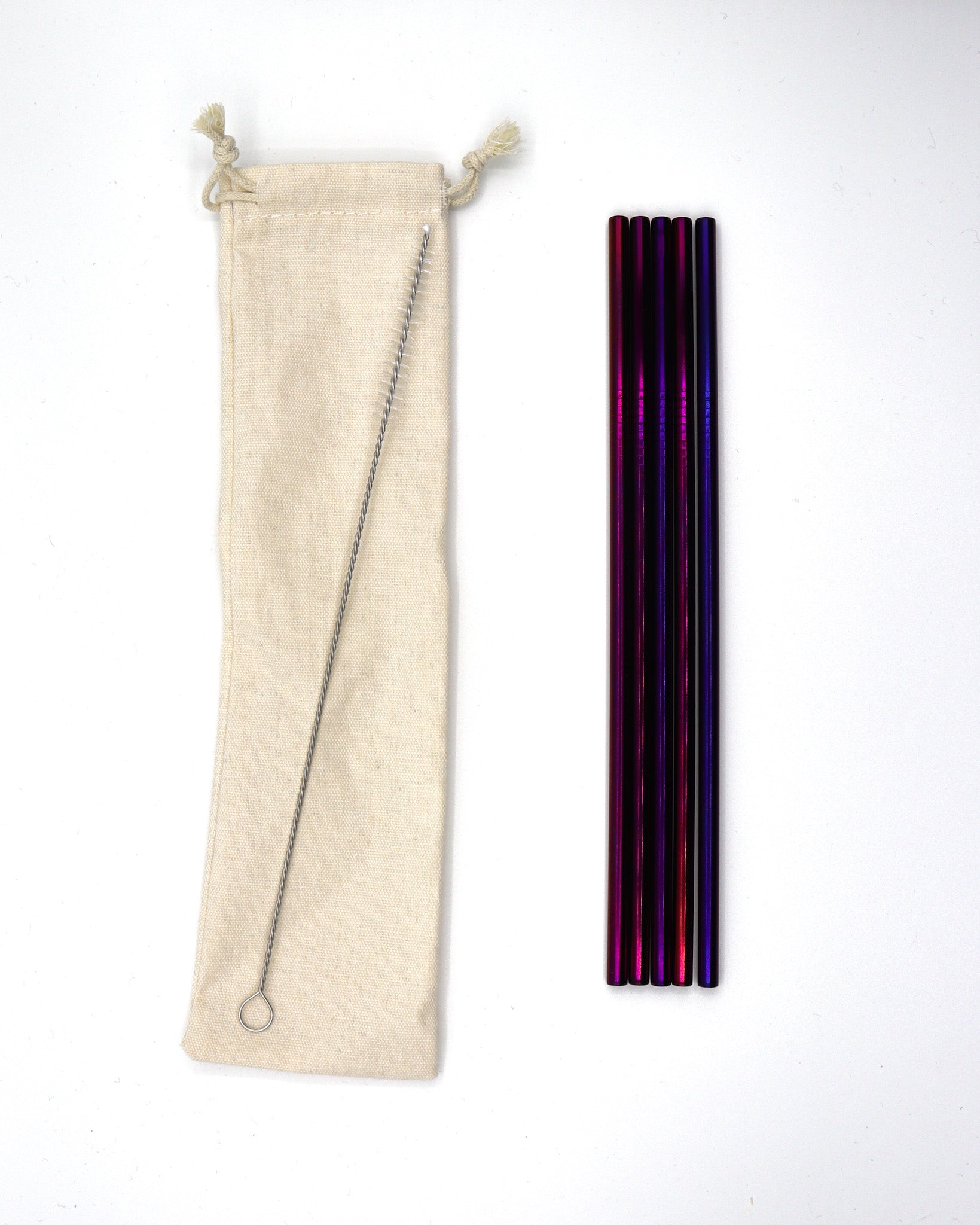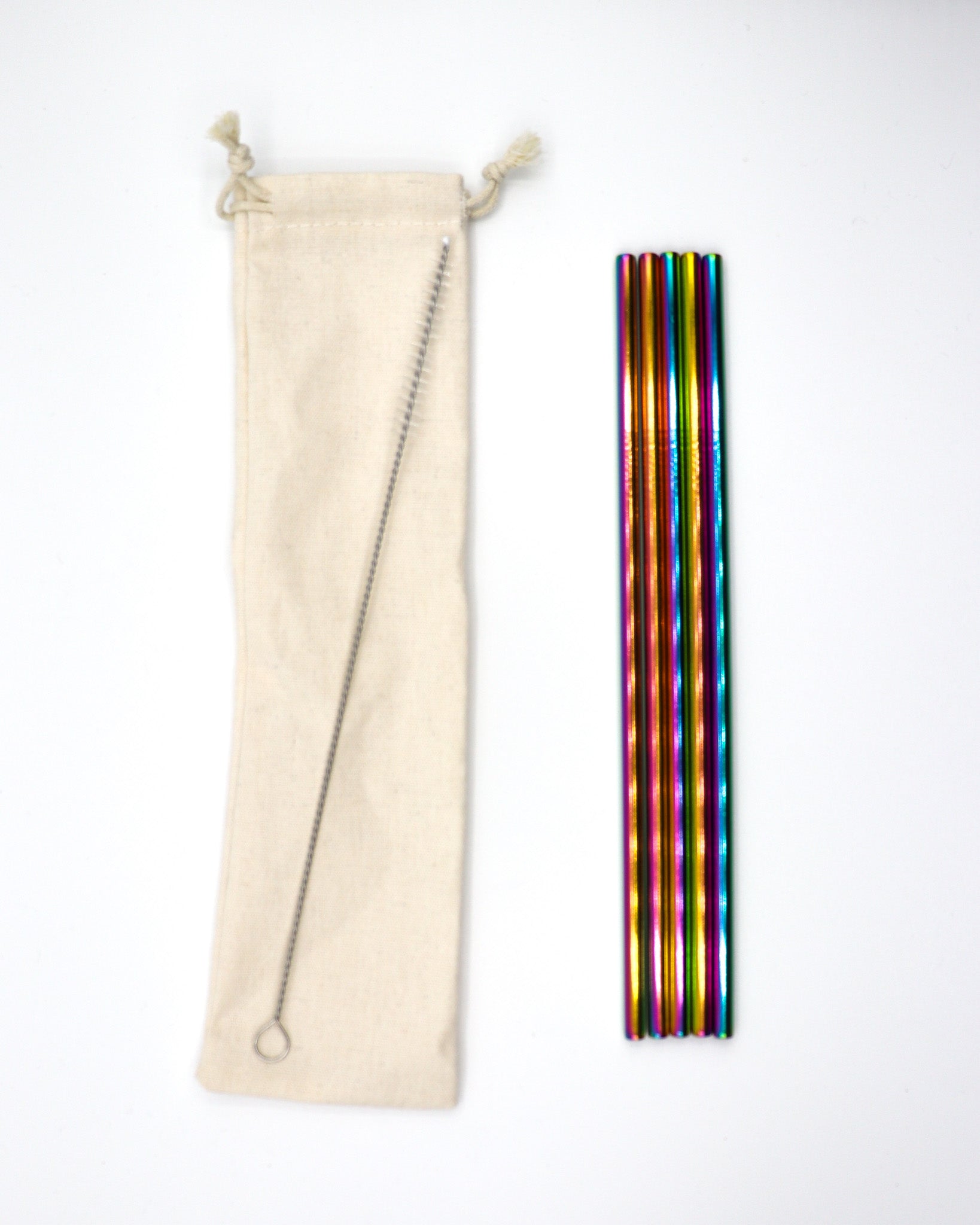 Deze set van 5 roestvrijstalen herbruikbare rietjes zijn in 5 verschillende kleuren te verkrijgen. Ze komen in een linnen zakje met een schoonmaak borsteltje erbij.